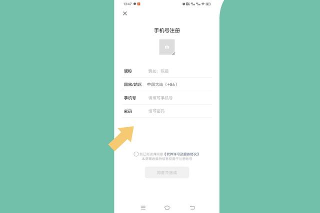 注册信息包括头像、昵称、国家地区、手机号、密码等,输入完成后勾选“协议”,选择“同意并继续”即可,需要注意的是,如果信息填写不完整,那么勾选了协议,该选项也无法点击,只有填写全部必填项之后才可以点击,点击该选项后需要阅读相关条款。如下图: